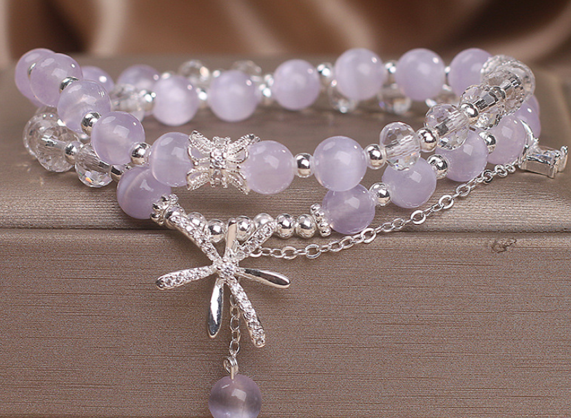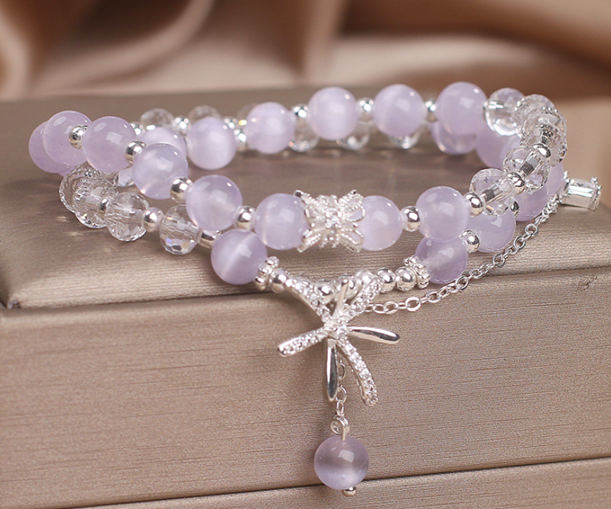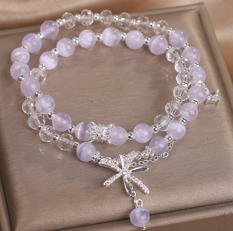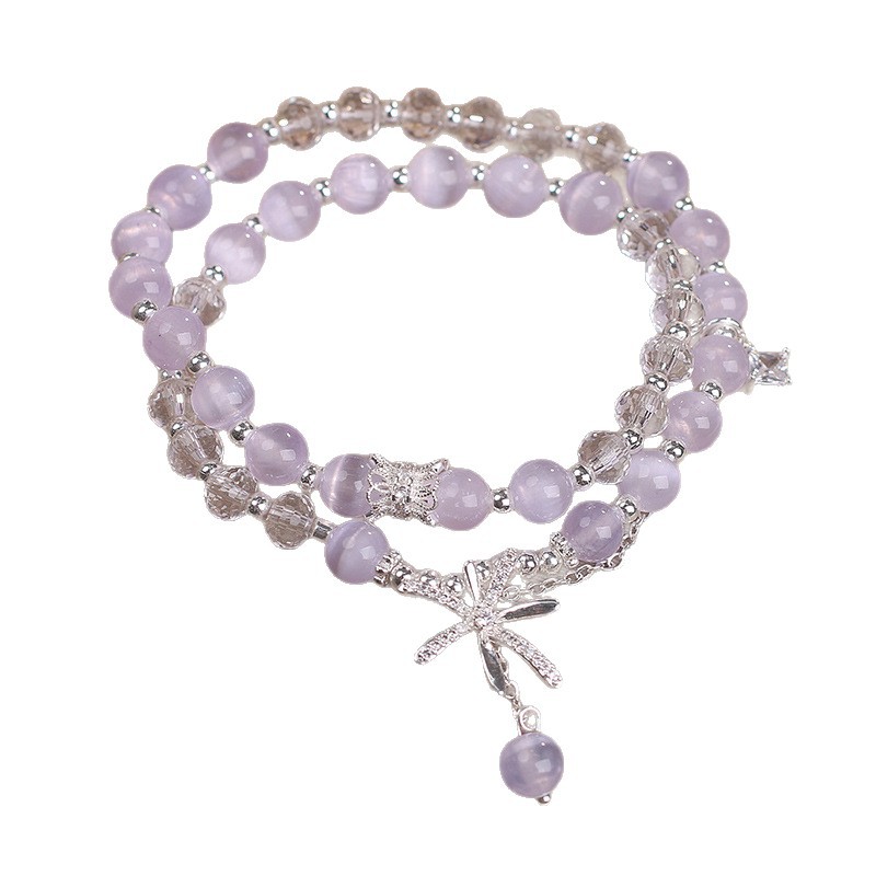Cat's Eye Stone Crystal Bracelet Women's Double Ring Twin Temperament