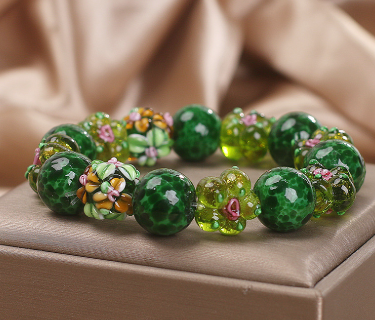 Chinese Ancient Flower Glazed Bracelet Women's Light Luxury